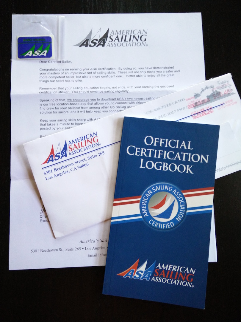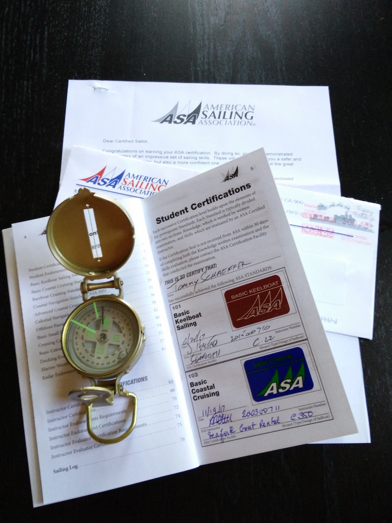 After “ASA 101,” the next level of certification with the American Sailing Association is ASA 103: Basics of Coastal Cruising. The ASA skips 102 and reserves that class number for classes specific to the local area. For instance, locations in Florida may focus on sailing in the ICW (Intracoastal Waterway). Lake locations in Colorado may focus on high-altitude health precautions and safety. At least this is what one sailor told me once. I just tried a search to confirm this and found nothing. So it will be our little mystery!