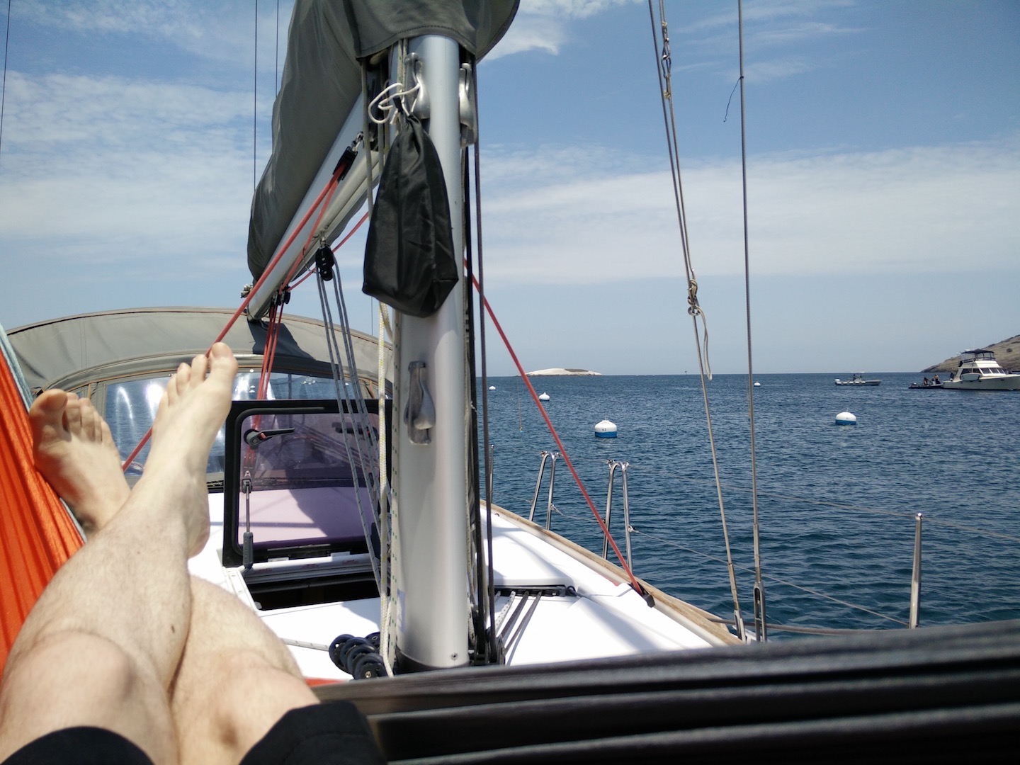 This was also my first experience with fore-aft moorings. It was tricky and intimidating at first, but we “had it mastered” by the end of the trip. That’s in quotes because any good sailor knows, “Never are you a master!” nevertheless, we were pretty darn good at it after 4 moorings and several goes at it each of those four times. While there can be many “tricks” to enumerate, there is one that comes to mind first. When in doubt, abort your approach and just come in again. No one is going to take points off your “lifetime sailing card” for a re-approach. They will, however, enjoy many snickers and maybe even dock those points if you nab those mooring lines in your prop.